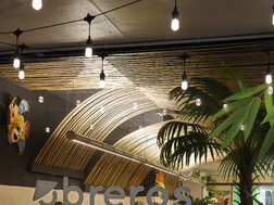 soto was in a wonderful converted brick fire station, one of bambusero's major contributions was to design wall panels with a woven pattern, lit from behind, creating a sort of back-lit basket like effect. there are various other bambusero elements in the restaurant, including a sculpture, artwork, lighting and ceiling linings.