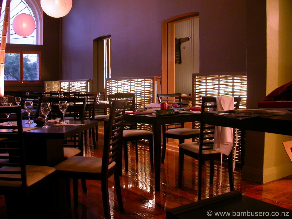 soto was in a wonderful converted brick fire station, one of bambusero's major contributions was to design wall panels with a woven pattern, lit from behind, creating a sort of back-lit basket like effect. there are various other bambusero elements in the restaurant, including a sculpture, artwork, lighting and ceiling linings.